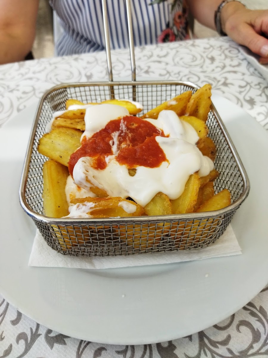 Bravas y ensalada deliciosas. Volveré. Esto puse una vez tomando tapas. Hoy he vuelto a probar el menú. ¡Qué delicia para los sentidos! Bonito, bueno y para la calidad barato. El mejor atún fresco que he probado en mi vida. La atención, inmejorable. La terraza con vapor de agua cada 10 minutos súper agradable. Los baños impecables. Vamos. Le pondríamos 10 estrellas si las hubiera.